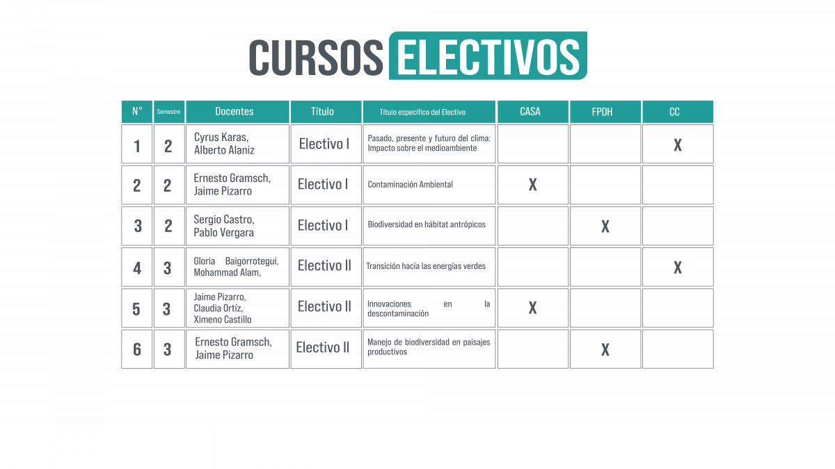 - Aprendizaje de una variedad de herramientas geoespaciales y estadísticas, instrumental de investigación y métodos avanzados de investigación socio-ecológica que den soluciones a problemáticas ambientales, incluyendo: el tratamiento de aguas residuales; reciclado de residuos silvoagropecuarios; implementación eficiente de áreas protegidas; predicción de patrones climáticos; producción y almacenamiento de energías limpias.