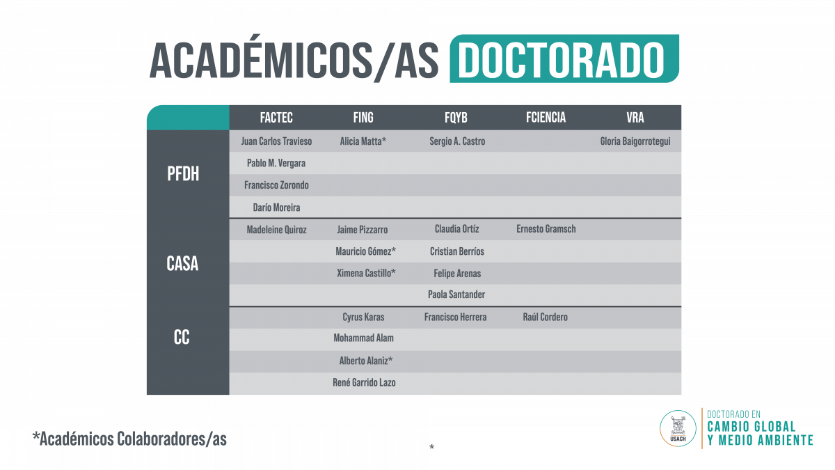 Es un programa de modalidad semipresencial que busca la formación de investigadores que enfrenten los desafíos ambientales derivados del cambio global. Las tres líneas de investigación son la contaminación del agua,